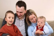 Oliver Hudson, jeans, sunglasses, gray shirt, Wilder Hudson, Goldie Hawn, sunglasses, necklace, basket, tank top, black jacket